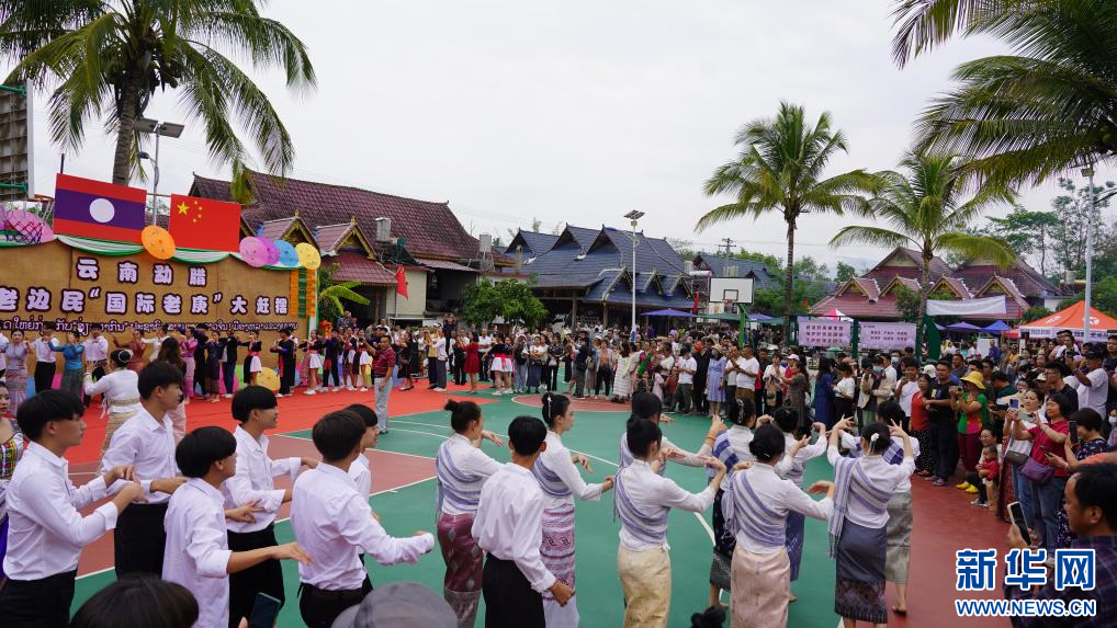 5月6日,人们在勐满镇曼烈村举行的中老边民“国际老庚大赶摆”活动上跳舞。(勐腊县委宣传部供图)