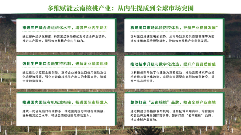 8月22日,由中国经济信息社与云南省大理白族自治州永平县人民政府联合打造的“新华・云南(永平)核桃价格指数2025”,在云南昆明正式发布。指数覆盖核桃青皮果、鲜果、干果、核桃仁四大品类,采集杉阳镇、厂街彝族乡等8个主产地交易数据,形成动态监测体系,为相关产业政策的制定提供精准数据支撑,为全国高原特色产业的数字化发展提供宝贵经验。