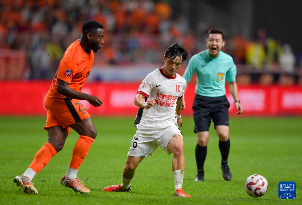 8月23日,成都蓉城队球员周定洋(中)在比赛中。新华社记者 陈欣波 摄