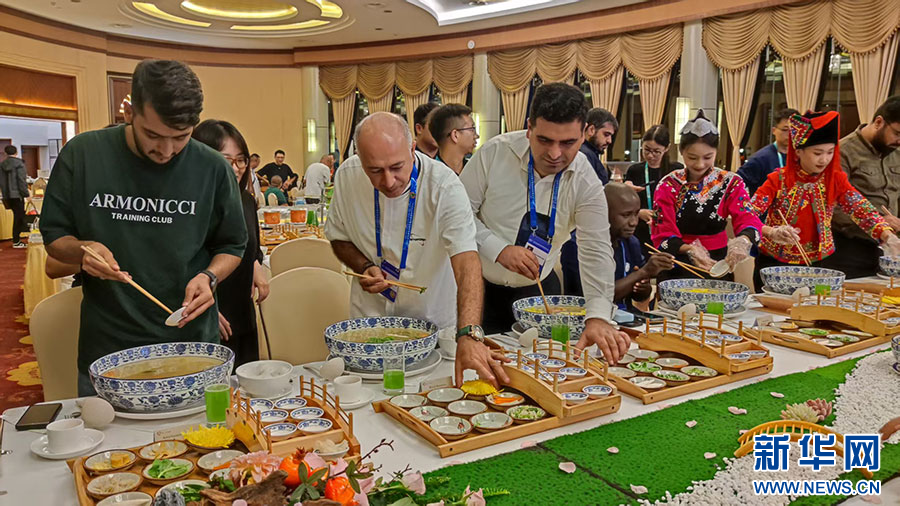 嘉宾品尝过桥米线(9月7日摄)。新华网发(韩文萍 摄)