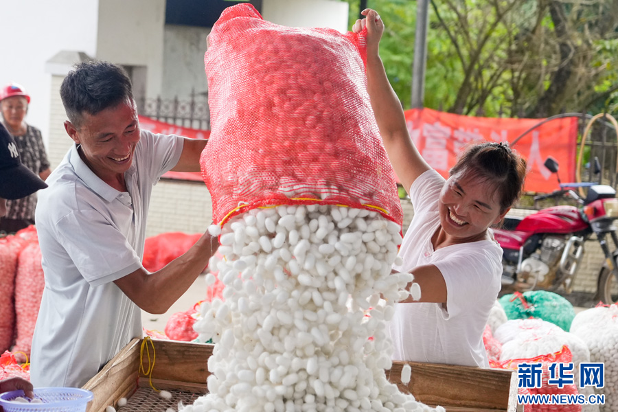 勐约乡蚕茧收购现场 (9月5日摄)。新华网发(段宗智 摄)