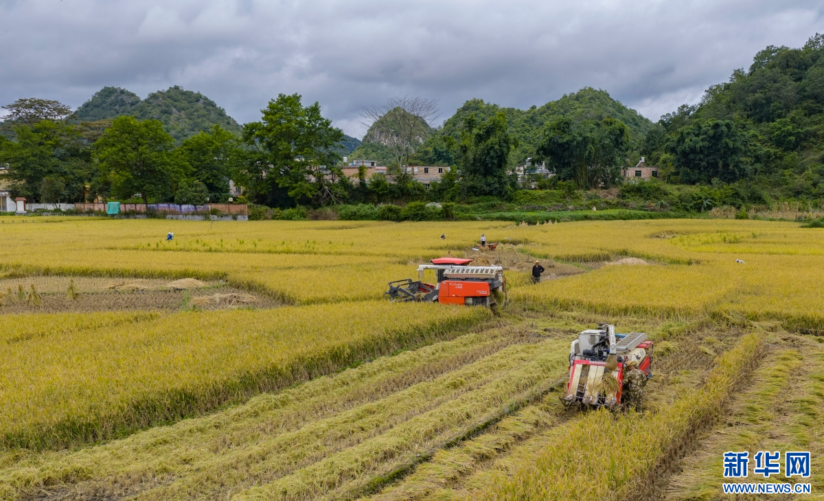 秋日里,走进云南省文山壮族苗族自治州广南县八宝镇,八宝米进入集中收割期。稻浪翻滚,金穗饱满,收割机穿梭在田野间,处处洋溢着丰收的喜悦。稻田、屋舍、峰林共同组成一幅美丽的田园画卷。