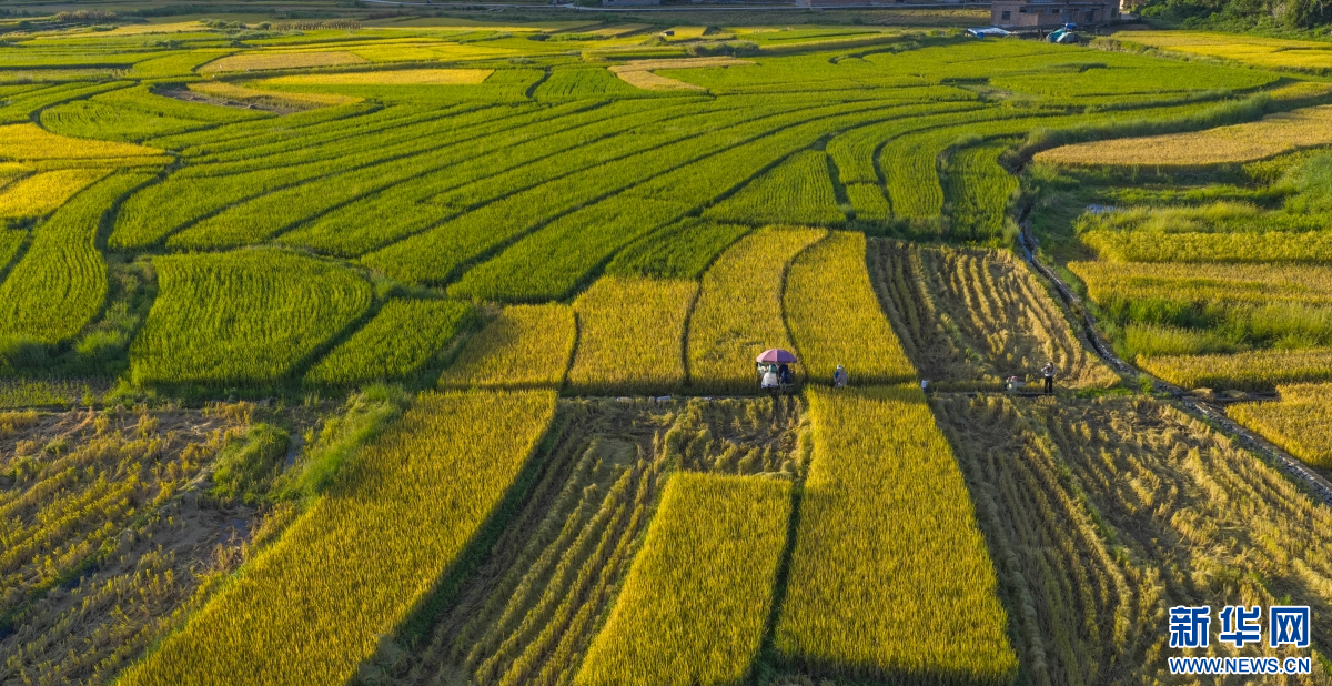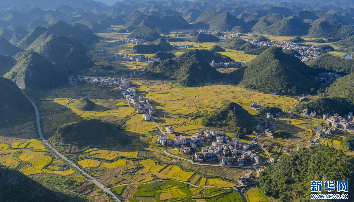 云南省广南县八宝镇,稻浪翻滚绘丰收图景(9月15日摄)。新华网发(熊平祥 摄)