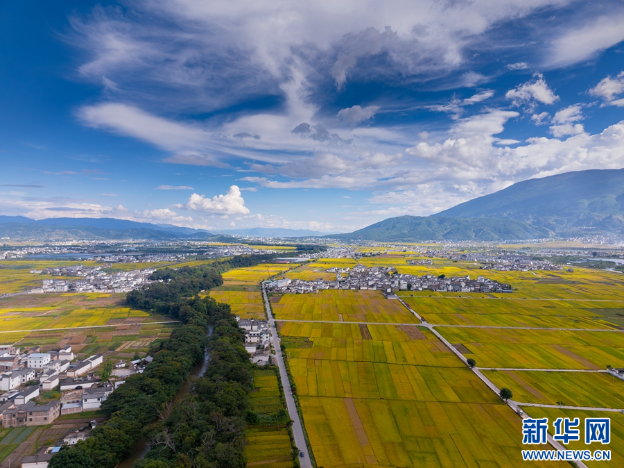 在洱源县右所镇拍摄的稻田(摄于9月20日)。新华网发(罗新才 摄)