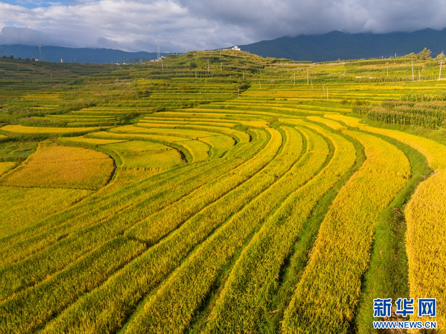 在洱源县凤羽镇拍摄的梯田水稻(摄于9月21日)。新华网发(罗新才 摄)