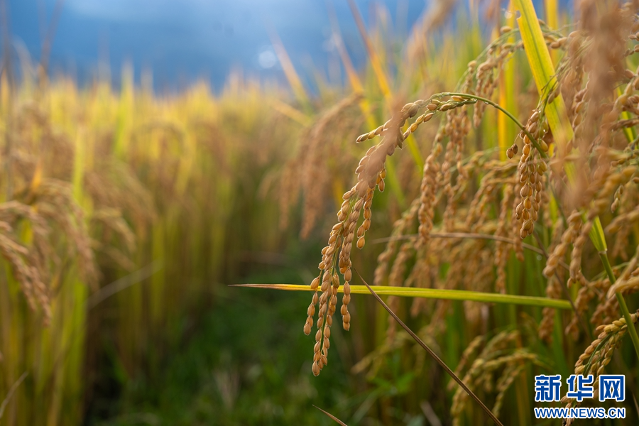 洱源县凤羽镇稻田里,沉甸甸的稻穗压弯了枝头(摄于9月21日)。新华网发(罗新才 摄)