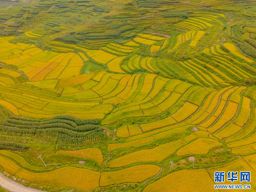 航拍视角下的凤羽坝子,一派好“丰”景(摄于9月21日)。新华网发(罗新才 摄)