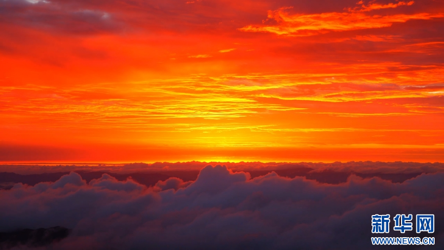 金秋九月,云南省昭通市大关县靖安镇山巅,五彩朝霞将天际染得绚烂夺目。光影交织间,气势磅礴,绘就出一幅绝美壮丽的山河画卷。(唐应平 何桂花)