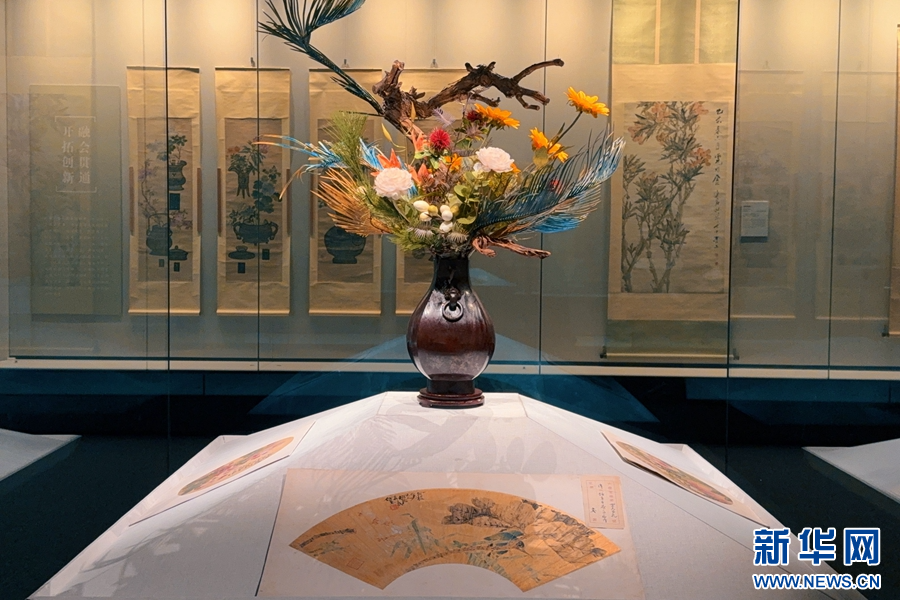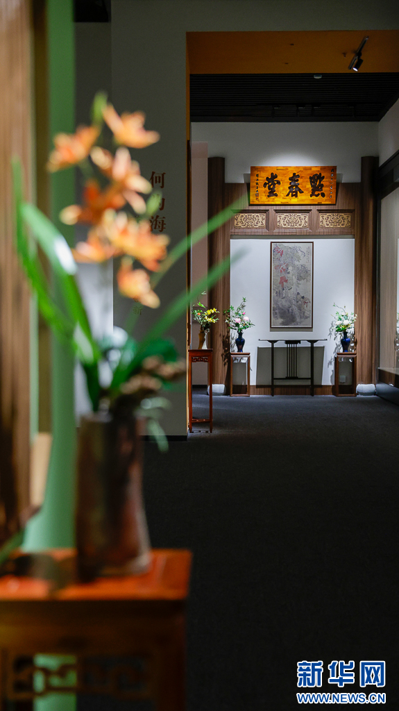 “上海·海上——上海市历史博物馆藏海派绘画名家作品展”展厅一角(摄于9月30日)。新华网发(刘东 摄)