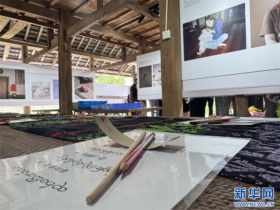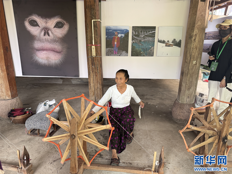 各类影像作品在傣族园的傣楼中展示(10月2日摄)。新华网发(柴静 摄)