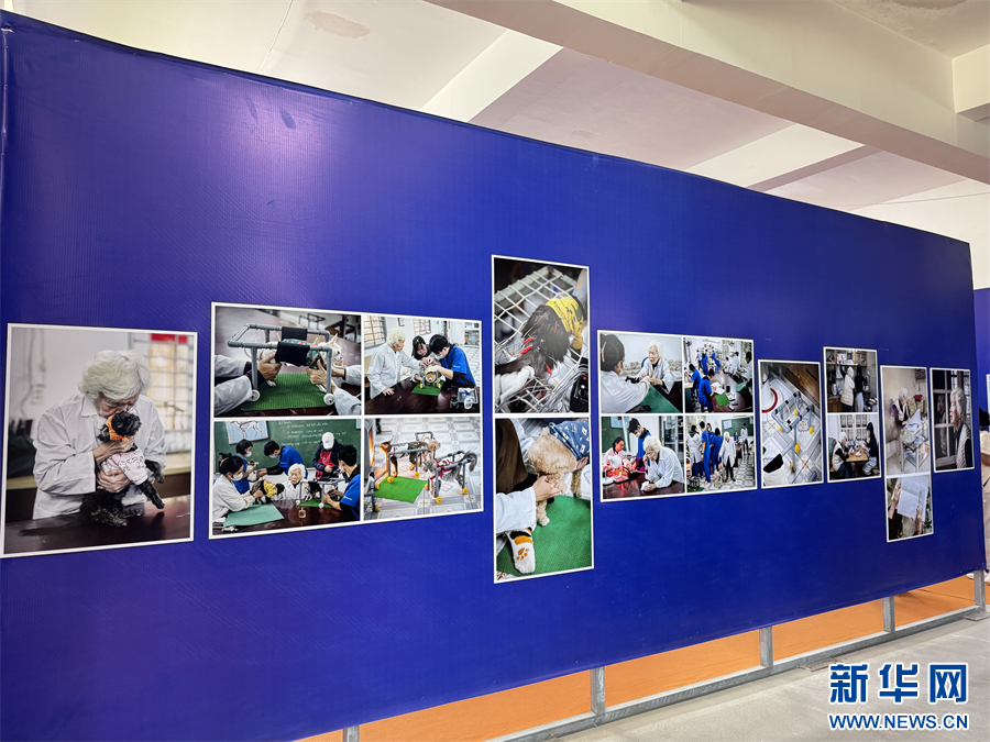 一组关于宠物医生的图片故事在现场展出(10月2日摄)。新华网发(柴静 摄)