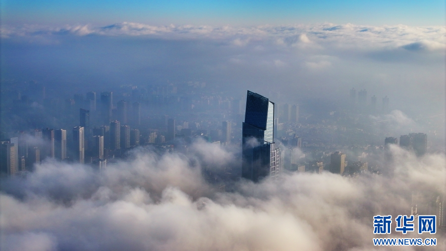 城市笼罩在云雾之中(摄于12月10日)。新华网 赵普凡 摄