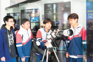 同学们用望远镜学习天文知识。