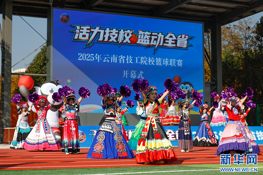 2025年云南省技工院校篮球联赛开幕式在云南技师学院(云南工贸职业技术学院)举行(12月15日摄)。新华网发(徐华陵 摄)